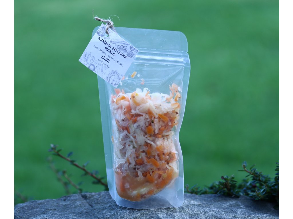 Naše kvašená zelenina (pickles) je vyrobená metodou mléčného kvašení bez přidání vody, cukru nebo konzervantů, jen za pomoci soli. Zeleninu kvasíme v keramických nádobách jak za časů našich babiček :) . Takto vykvašená zelenina je bohatá na vitamíny,minerály, enzymy a je plná přírodních probiotik. Další zdravotní benefity si můžete přečíst ZDE .